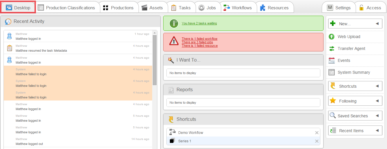 | Tasks Section | My Tasks | My Tasks option on the Desktop that is displayed when you select the Tasks tab |