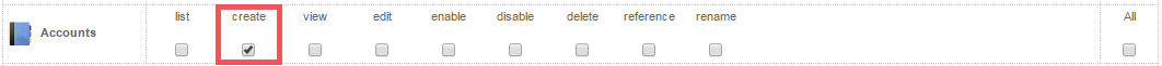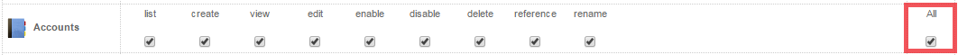 Alternatively, if you want to assign all the permissions in a particular row, click the All check box located to the