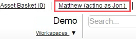 When you are acting as somebody else, it is displayed in the top right corner of the Dalet Flex console. For example if your name was ‘Matthew Carter’ it might say Matthew Carter (acting as Jon Folland).
