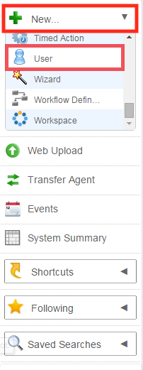 In the Toolbar on the right, click New and and select User from the drop down menu.