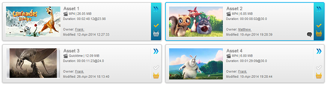 In the card view, if you are in Bulk Action mode, you can select multiple assets by selecting the tick icons located on the right edge of each card. Once selected, they will turn from white to yellow.