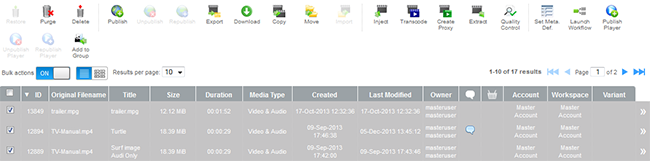 Bulk actions are used across Dalet Flex, to allow the user to manage multiple objects simultaneously.