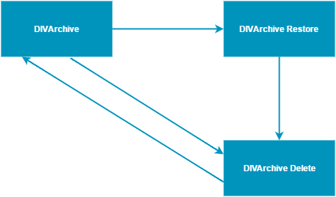 In the diagram below, you can see how each of the DIVArchive plugins relate to each other, and in what order they can be used: