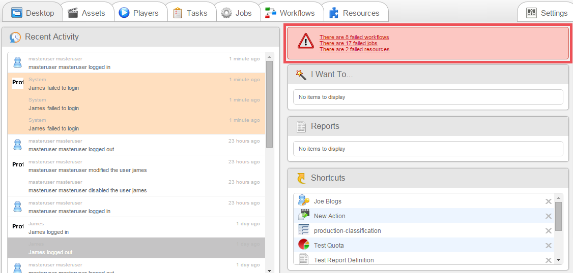 You will know if a job or resource has failed, as it will be presented on the relevant dashboard.