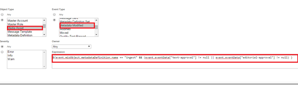 Select Event Type: Event types are filtered by the object type and then the event types supported by the chosen object type(s).