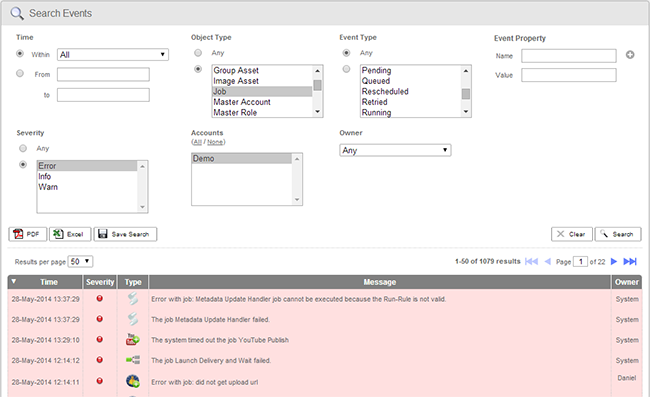 Select Owner: This field allows events to be filtered by the owner of the event. The owner is a specific Dalet Flex user.
