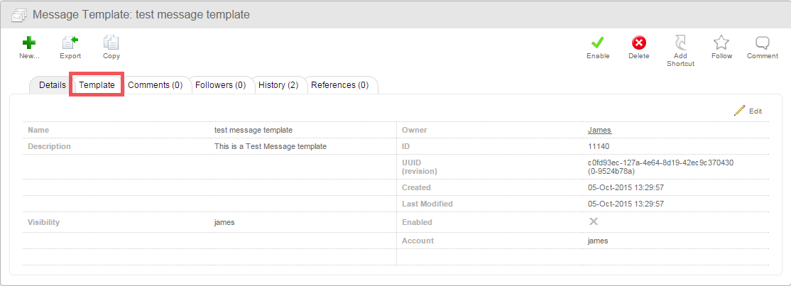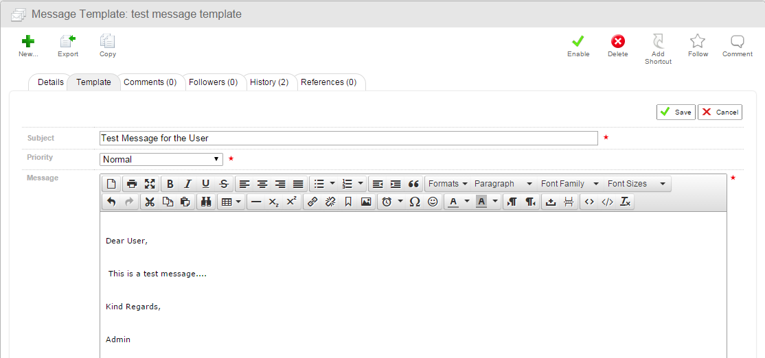 Once you have created your new message template you must set up a template. The template comprises the content and formatting for your message.