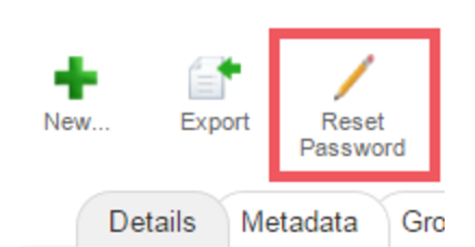 Note: The password for a user can be reset, by going to the details section for that particular user, and clicking the Reset Password link, located in the top-left corner. An email is then sent to that user, requesting that they change their password.
