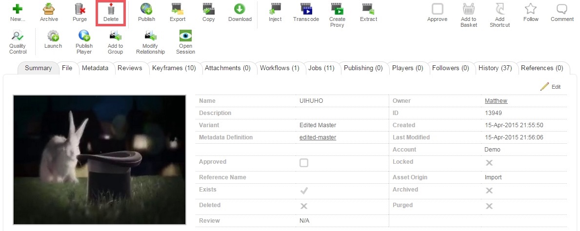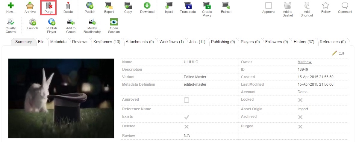 Purging an asset needs to be considered carefully as Dalet Flex cannot restore a file that has been deleted from an underlying storage system.