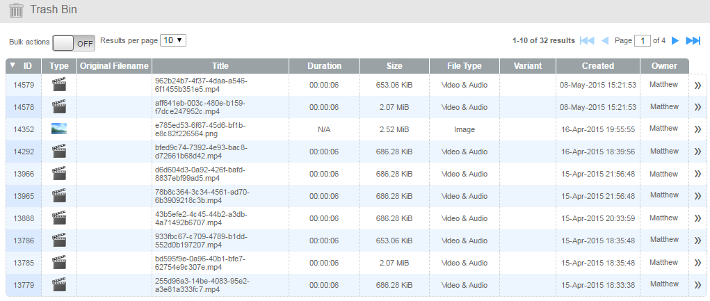 The trashbin provides a list of all assets that have been deleted in Dalet Flex. When an asset is deleted in Dalet Flex it is first moved to a designated “Trash” folder resource via the execution of a delete job. The asset is also marked as deleted. As with all object types in Dalet Flex, a deleted asset is not removed from the underlying datastore, it is simply flagged as deleted. The reason for this is that its important to know what was deleted previously for auditing purposes.