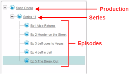 For example, Series might be a child object type of Production, and Episode might be a child object type of Series, and so forth.