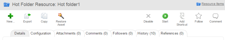You will see a list of resource items associated with the hot folder resource. Locate the desired resource item