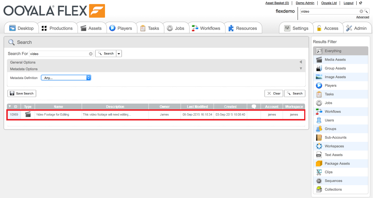 Search can be an extremely useful tool in Dalet Flex, as it can help you locate items you need to access quickly and easily. There are several different searches that can be run, including global searches, object specific searches, advanced searches, and pre-populated searches.