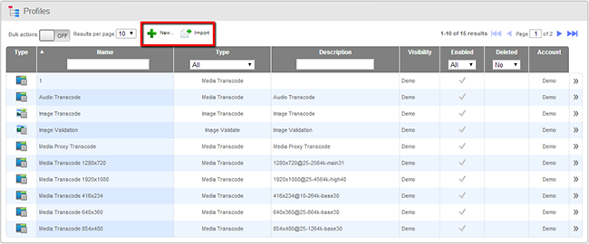 Some list views can be toggled to show a card view. The card view displays a grid of items. For example, in the case of assets, you can see a picture, technical format information, duration, the owner of the asset, and the modification date. The card view makes it easier to see the content of an object, where it comprises an image or a video. You can toggle between the search list view and card view as shown in the screen shot below.