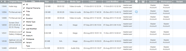 You can select which columns you wish to view by right-clicking on the table header columns, and selecting / de-selecting the required fields from the pop-up that appears. Your preferences are saved for future use. You can also drag and drop columns to change the order in which they are displayed.