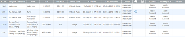 Lists of objects such as assets, workflows, tasks, and so on can be displayed in various forms in Dalet Flex. Example views include: