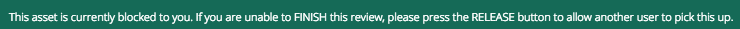 When a review session has been taken by a user, the review is blocked to all other users, meaning this will be presented in a read-only mode to the remaining users. The following message is displayed to the review owner: