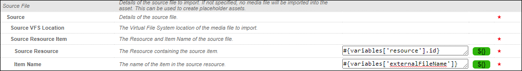 icon next to the Source Resource field to convert it to a free text field so you can type in this Spring Expression to indicate the storage resource that the imported asset is located in.