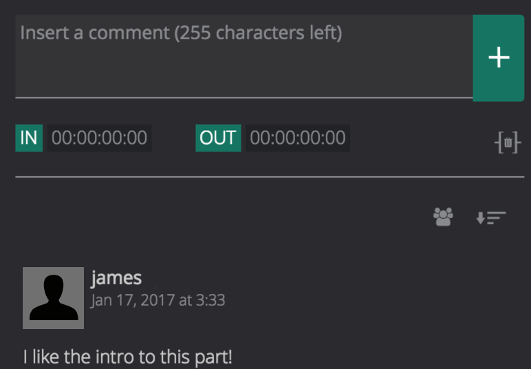 In the Insert a comment box, enter your comment, and click the + icon.
