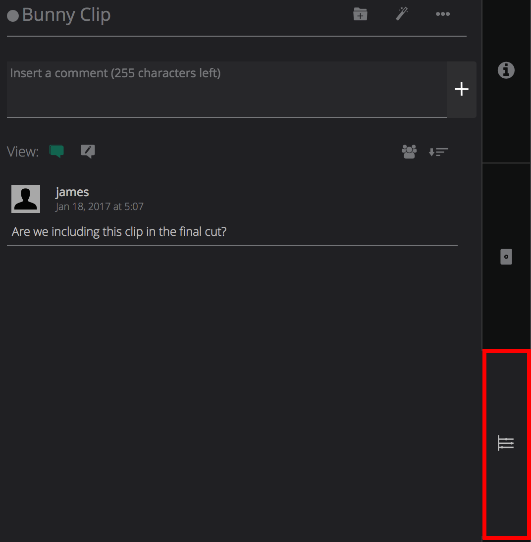 Under the Timelines tab you can post new comments and markers against the clip.