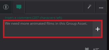 In the Insert a comment box, enter the text for your comment, and click the + icon.