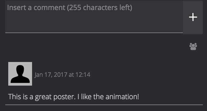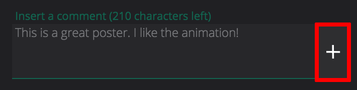 In the Insert a comment box, enter your comment, and click the + icon.