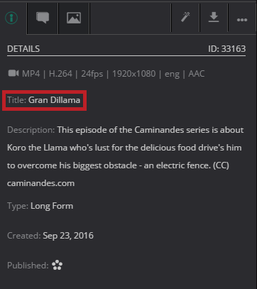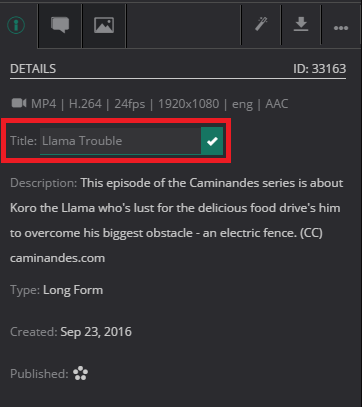 You will also see a Published field which gives you the option to publish your media asset with one click. For more detail about the one click publish action, please refer to the Actions section of this guide.