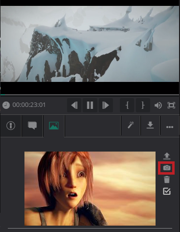 Play the asset, and when you have reached the desired frame in the video, click the Extract Keyframe icon.
