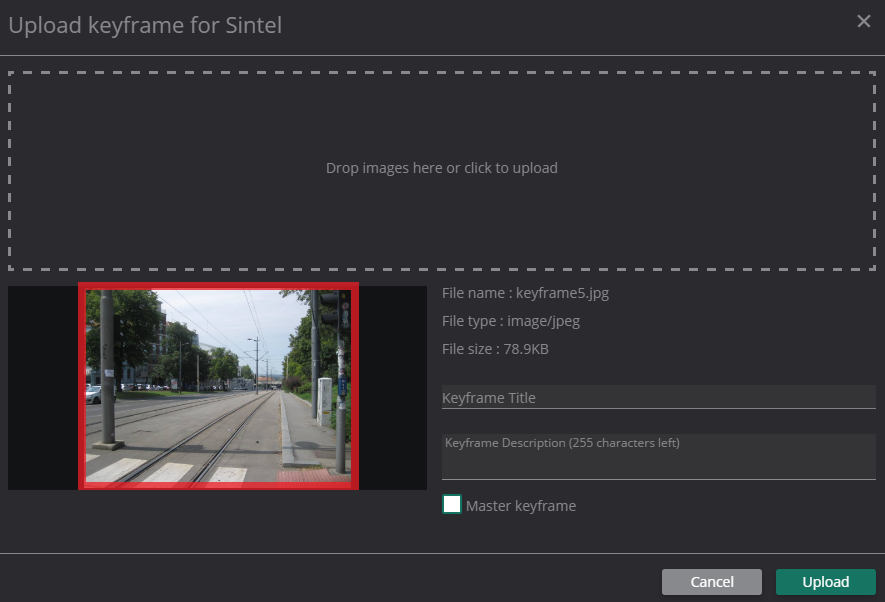 When you have finished specifying the details for your new keyframe, click the Upload button.