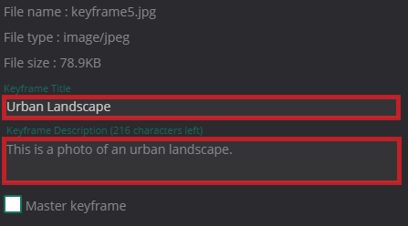 To set it as a poster keyframe, select the Master Keyframe checkbox.