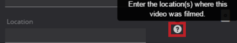 Some metadata fields will have a help symbol next to them. If you hover over this symbol, you can see helpful information which will explain what the field is for, and what must be inputted.