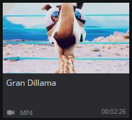 Each item in MAM, such as group assets, media assets, collections, and edits, is represented as a tile. These tiles are displayed on the MAM interface. Each tile for the different object types displays different information. The image shows an example of a tile for a media asset, where there is a representative thumbnail, title, format and duration of the media: