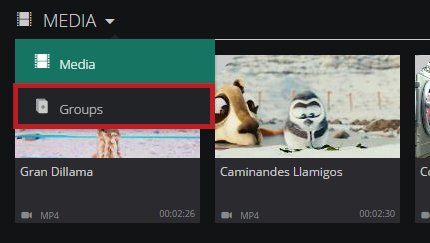 The Asset carousel changes accordingly, to display a list of your group assets, or your media assets.