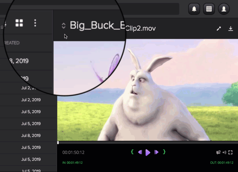 - Open details: Opens a modal that display a large keyframe image with additional details and action commands. You can edit the additional details in this view using the icon.