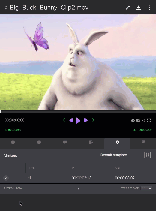 Metadata markers mark events at specific times in a video asset. You can view markers for your selected asset in the Metadata markers tab by clicking the tab marked with