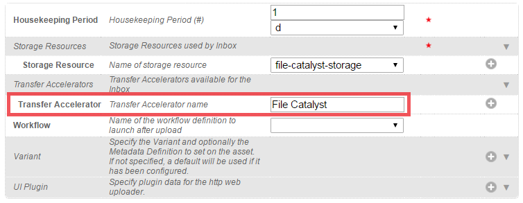 In the Transfer Accelerator field, enter a name for the transfer accelerator. Example: FileCatalyst.