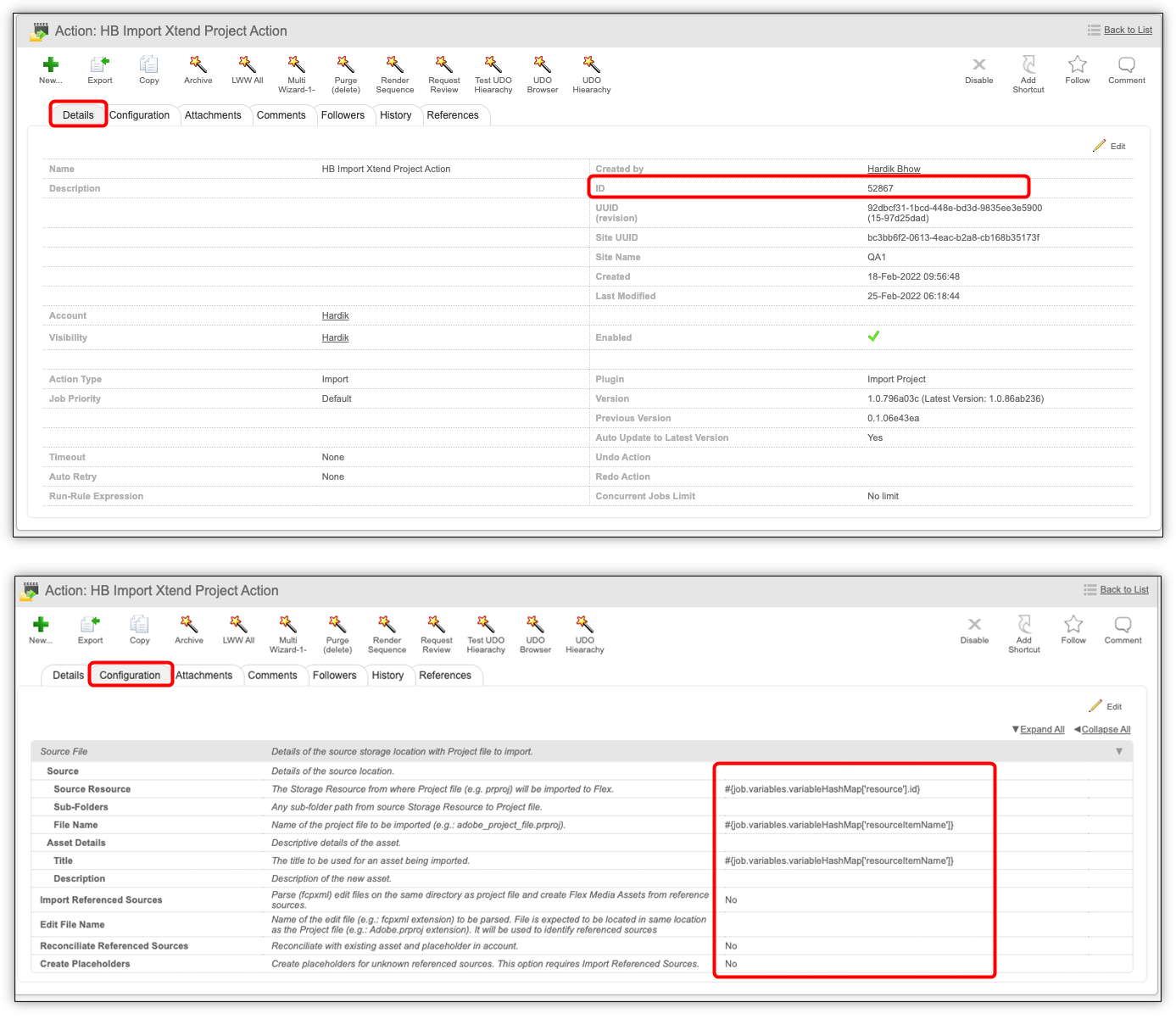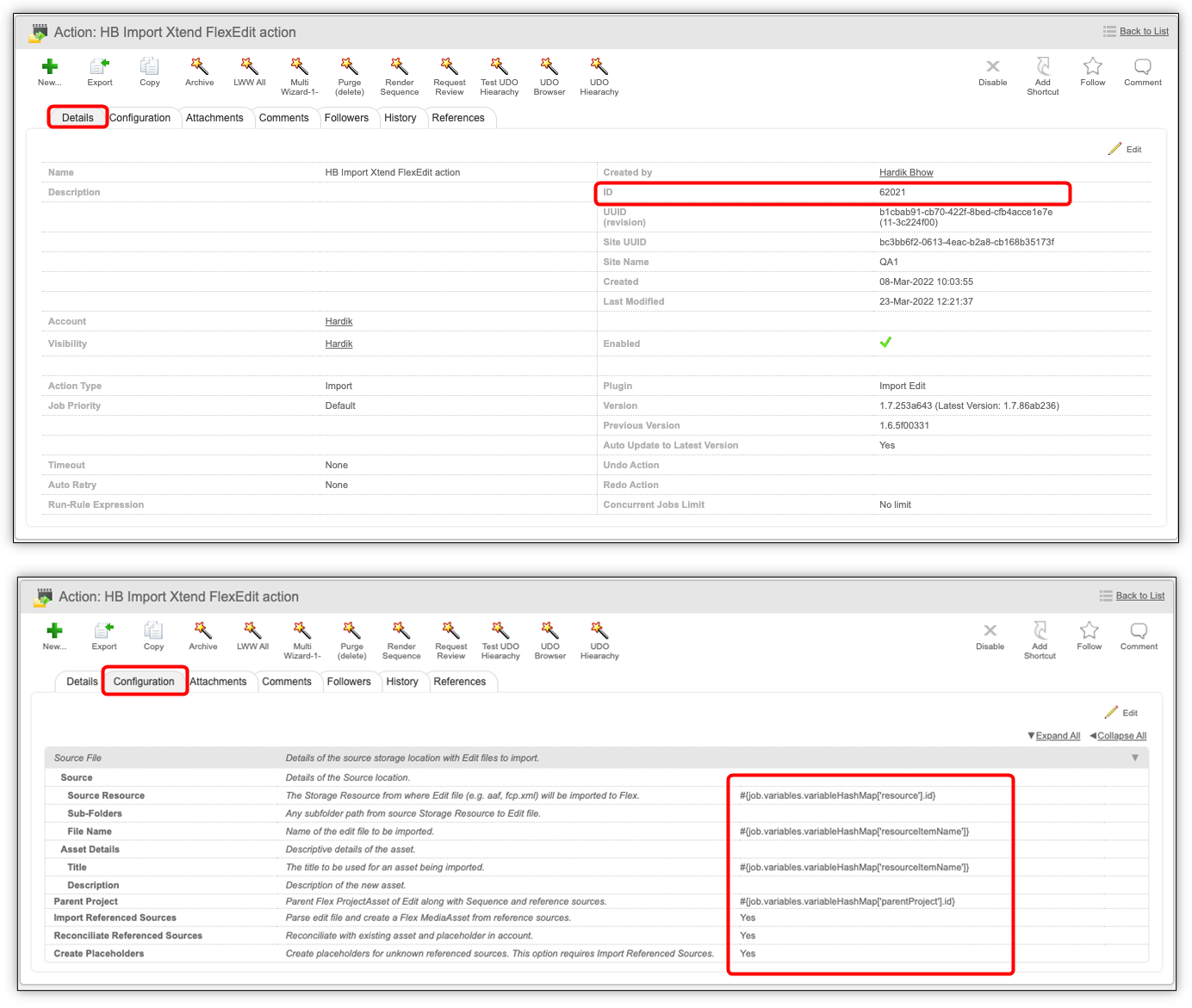 Note the Import Action ID under Details, as it is needed for the FlexXTEND panel configuration.