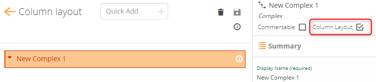 In Metadata Designer, add a complex field to a metadata schema and select the Column Layout check box.