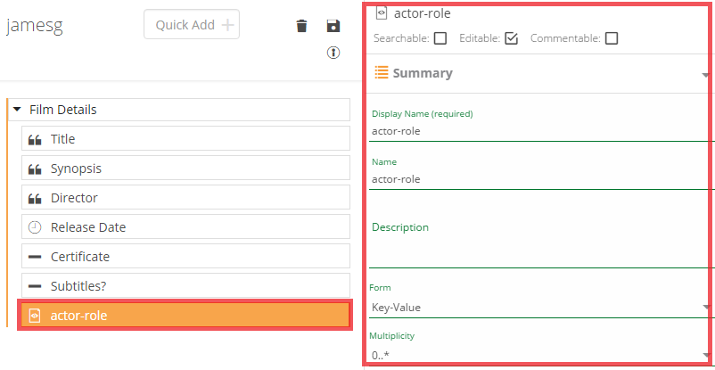 A complex field is a special type of field that enables nesting of other fields to make hierarchical data structures. Hence, a complex field acts as a container for other metadata fields. By adding complex fields to existing complex fields, you can nest fields several levels deep to make powerful, description data models. For example, you might create a complex field called “film-details” which contains key fields which describe a film.
