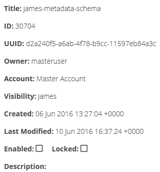 The Configuration panel provides additional information and configuration options for a selected metadata field (item). If you have not selected an item, then information about the metadata definition is provided as shown below.