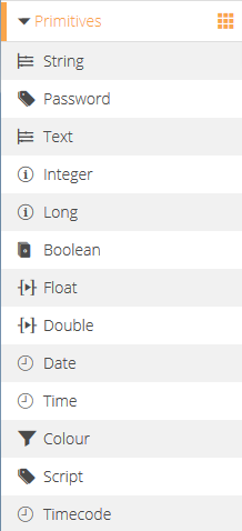 Primitive: Represent common, “primitive” data types such as float, integer and date. These types are basic building blocks for data.