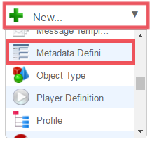 In the Dalet Flex console, on the toolbar, click New and select Metadata Definition.