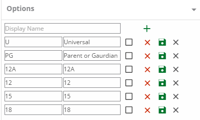 Adding a new Option Value: To add a new Option value, enter the value in the Display Name box and press the green cross button.