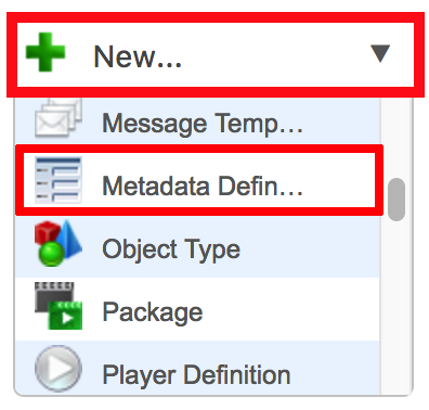 - In the Dalet Flex console, on the toolbar, click New and then Metadata Definition.