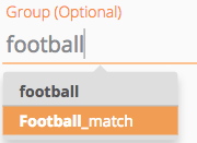 - In the Group field enter a name for the group. Group names must be between 2 and 40 characters and only include alphanumeric characters and underscores, e.g., Football Match. You can add more timelines to this group once the group has been created. For example, in a group called Football Match, you might decide to add other timelines such as Injury, Goals, Yellow Card, Red Card, and so on.