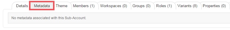 When you have created your account, you can apply metadata to that account by clicking the Metadata sub-tab, which is located in the account details screen.
