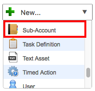 A sub-account represents an account that belongs to an existing account. Sub-accounts are useful, for example, when an account that belongs to a single company needs to be split up into multiple business units with self-administration. An account can access all of the objects that belong to its sub-accounts.