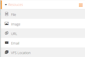 Resources: These include images, files, URLs, Emails, and VFS Location.