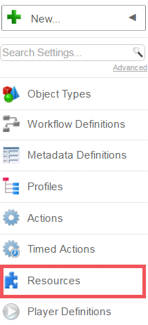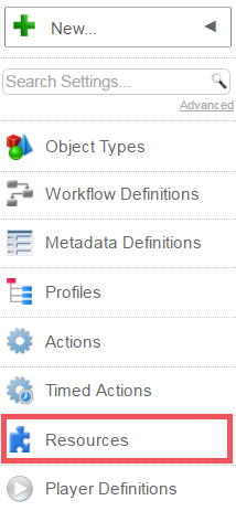 On the Resources screen, click the New option.