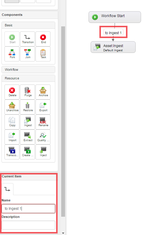 In the Current Item panel, you can edit the name and description for the transition if you wish.
